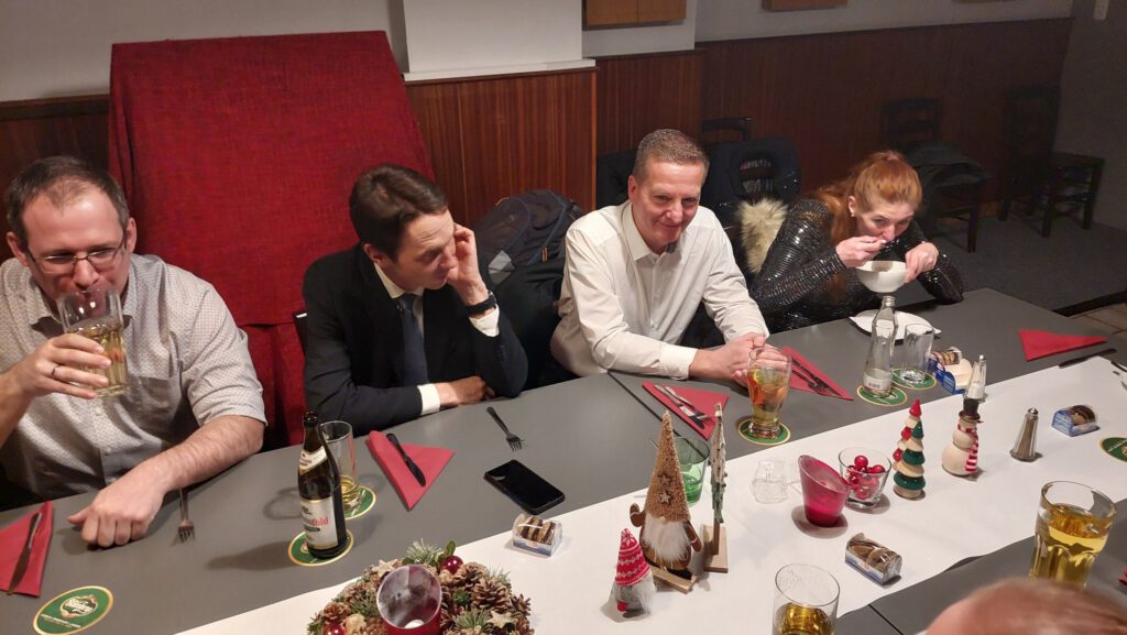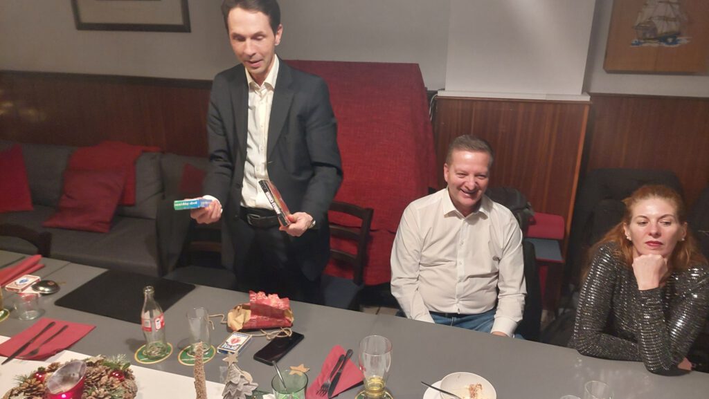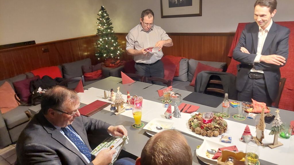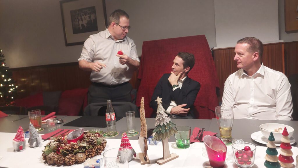 Dann wurde gegessen, gelacht und angestoßen. Das gemeinsame Essen war die perfekte Grundlage für einen entspannten Abend, bei dem man sich auch einmal abseits von Routine und Programmpunkten austauschen konnte. Und weil Weihnachten ohne eine kleine Überraschung nur halb so schön ist, durfte natürlich auch Engerl Bengerl nicht fehlen. Jedes Mitglied wurde von einem anderen beschenkt, und es war schön zu sehen, wie viel Gedanken sich dabei gemacht wurden.